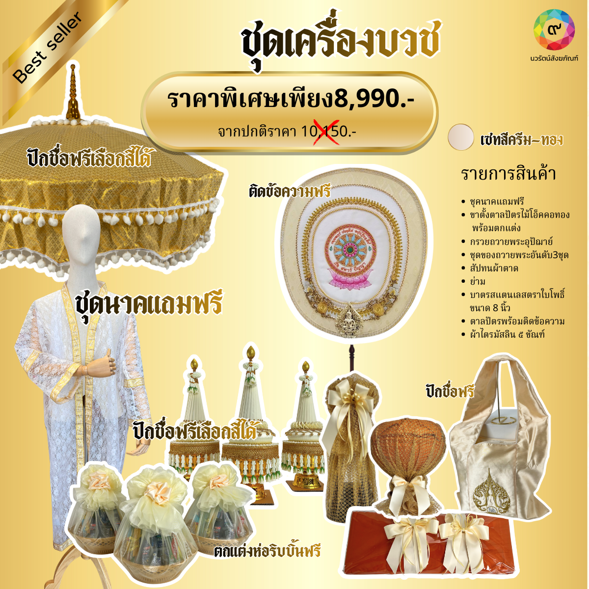 ชุดบวชพรีเมี่ยม ครบถ้วน ถูกต้องตามพิธี